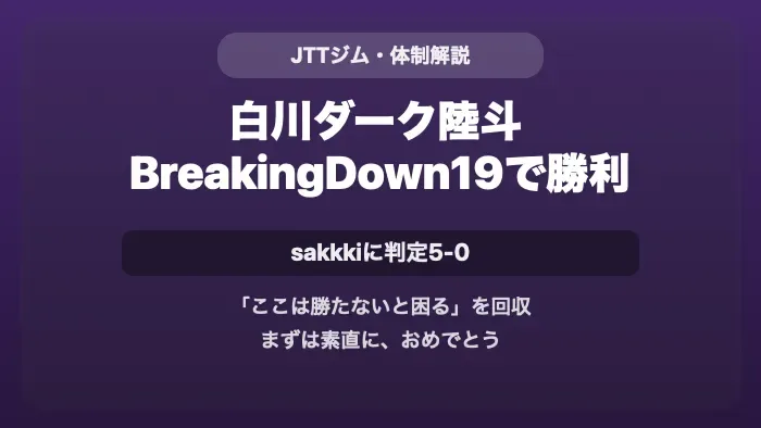 BreakingDown 19で白川ダーク陸斗がsakkkiに判定5-0で勝利。名古屋vs大阪対抗戦の大将戦、MMAルールでの試合内容を振り返る。